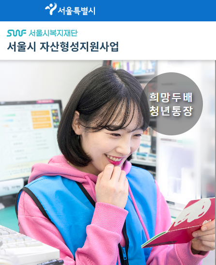희망 두 배 청년통장이란? 근로하는 청년이 목돈 마련을 통해 경제적으로 자립하고 구체적인 미래계획을 수립하여, 희망찬 미래를 열어갈 수 있도록 지원하는 자산형성지원사업이다. 본 통장에 가입한 후 2년 또는 3년간 매월 15만 원의 금액을 저축하면, 저축한 금액과 동일한 금액을 서울시 예산과 시민후원금으로 추가 적립하여 지원하는 사업이다.