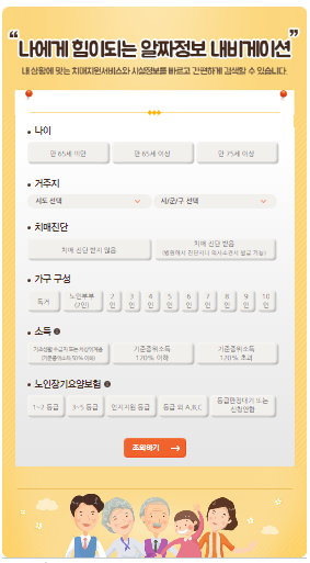 ①중앙치매센터→②알짜정보네비게이션(지원)→③입력란에 맞게 클릭 후 조회하기