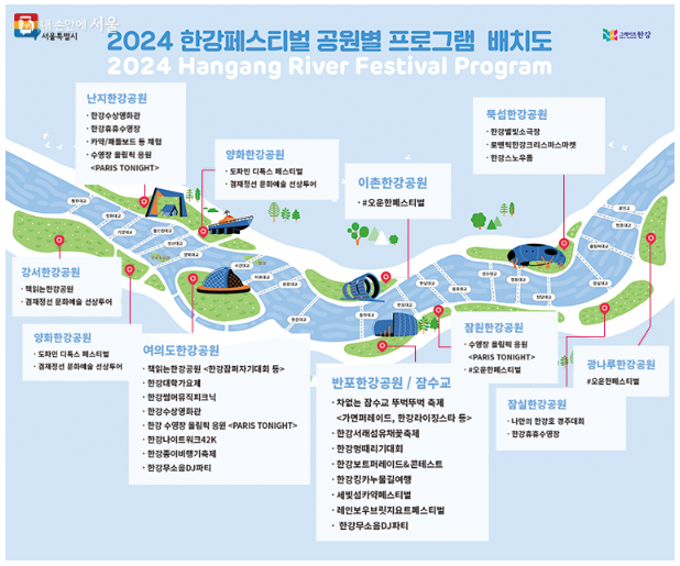 서울시 2024년 한강별 다양한 페스티벌 프로그램 안내도