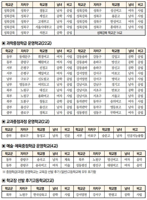 2024년 서울시 교육감 선발 후기고 명단 (일반 고등학교)