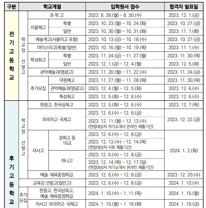 (자사고·외고·국제고 합격 시 교육감 선발 후기고 지원은 취소됨)