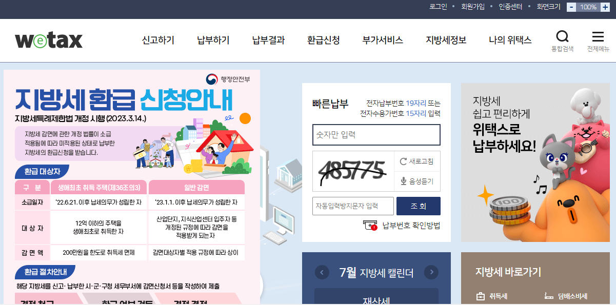 1. PC버전 위텍스로 재산세 납부방법