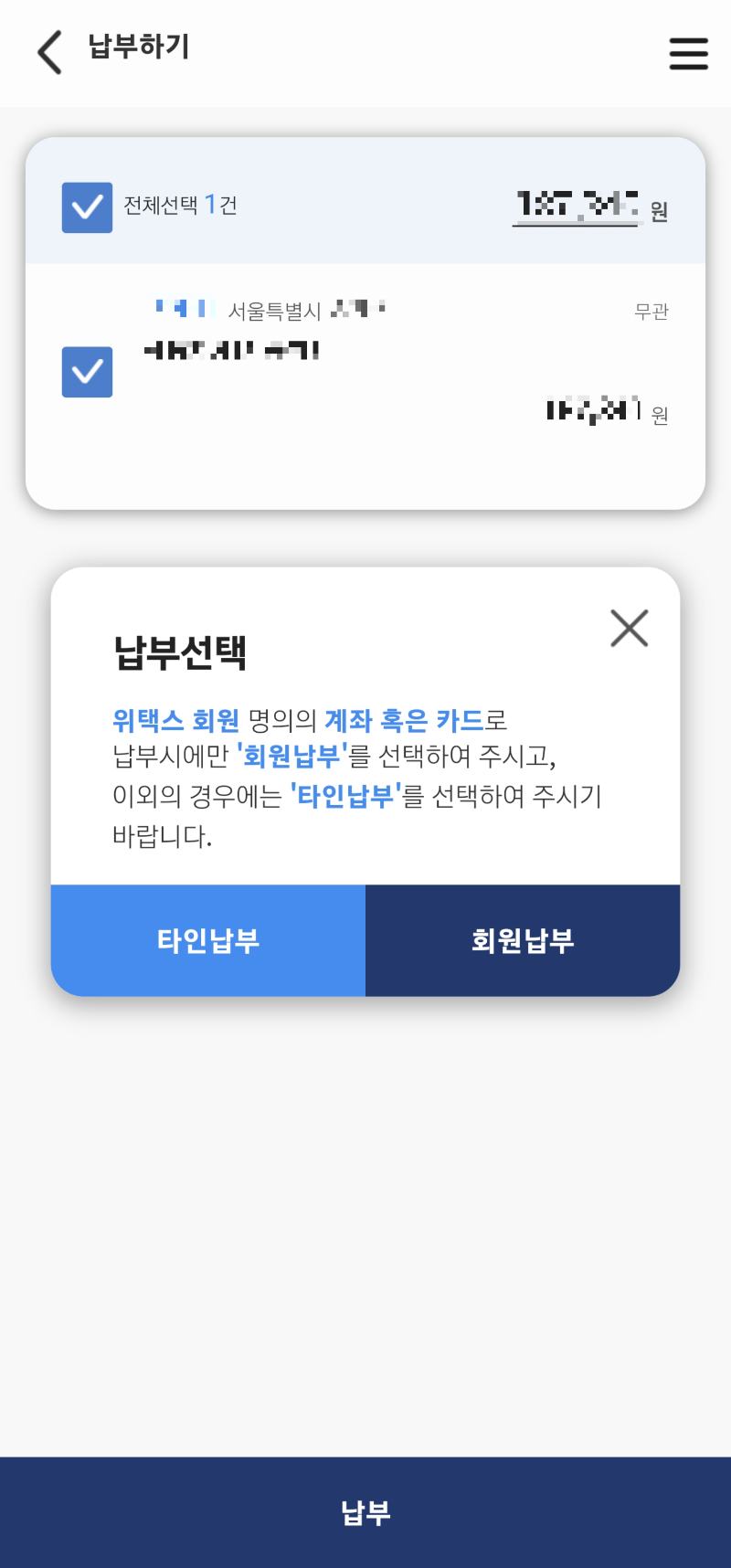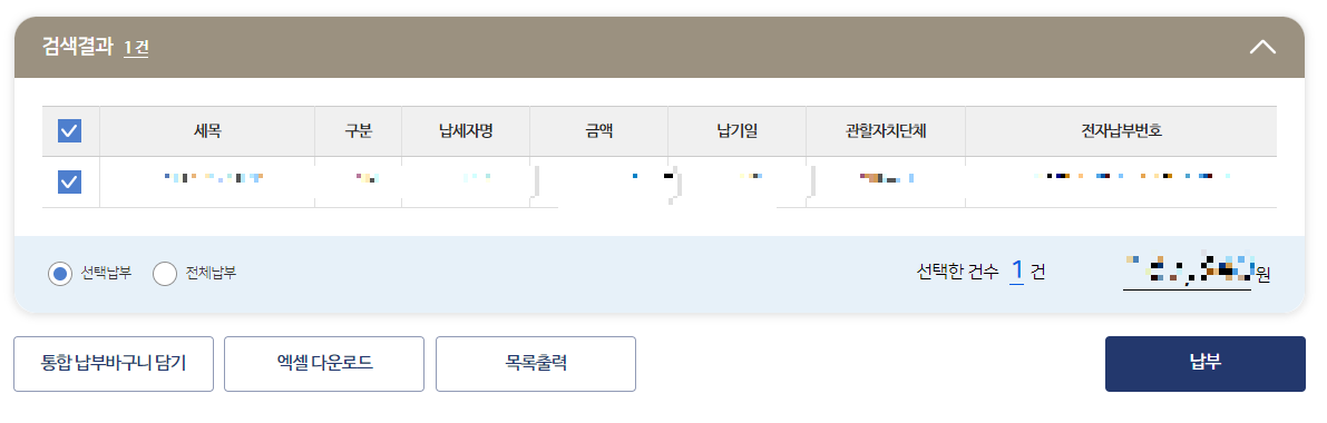 5)납부 클릭 후 납부하기