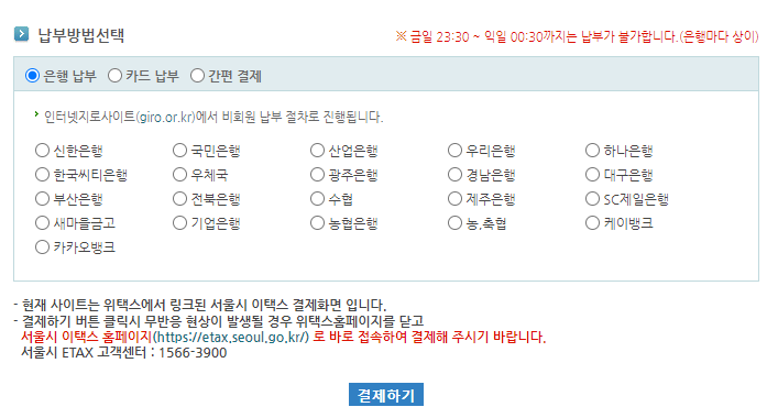 7) 납부 방법 선택한 후 납부하기