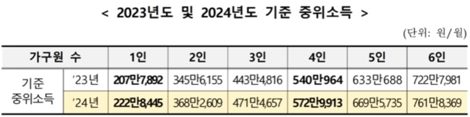 중앙생활보장 위원회는 2024년도 기준 중위소득 6.09%로 상향 조정 된다.